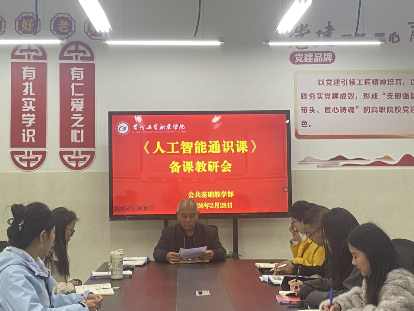为深入推进人工智能教育,提升《人工智能通识课》教学质量,助力学生数字素养培育,公共基础教学部于2026年2月28日召开《人工智能通识课》专题备课教研会,会议由公共基础教学部主任李加茂主持,全体授课教师以及《信息技术》授课教师参会研讨。