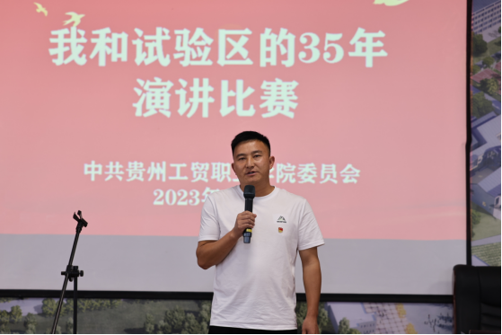 为深入学习宣传党的二十大精神,贯彻落实习近平总书记对毕节工作的重要批示指示精神,毕节试验区成立以来的经济社会发展变化,生动阐释毕节人民深化改革、锐意进取、埋头苦干、同心攻坚的精神风貌。根据市委教育工委、市教育局关于“我和试验区的35年”演讲比赛的通知要求,8月4日,学校党委组织开展演讲比赛,遴选优秀代表参加市级比赛。校党委委员、校长助理、党政办主任杨金钱致辞。