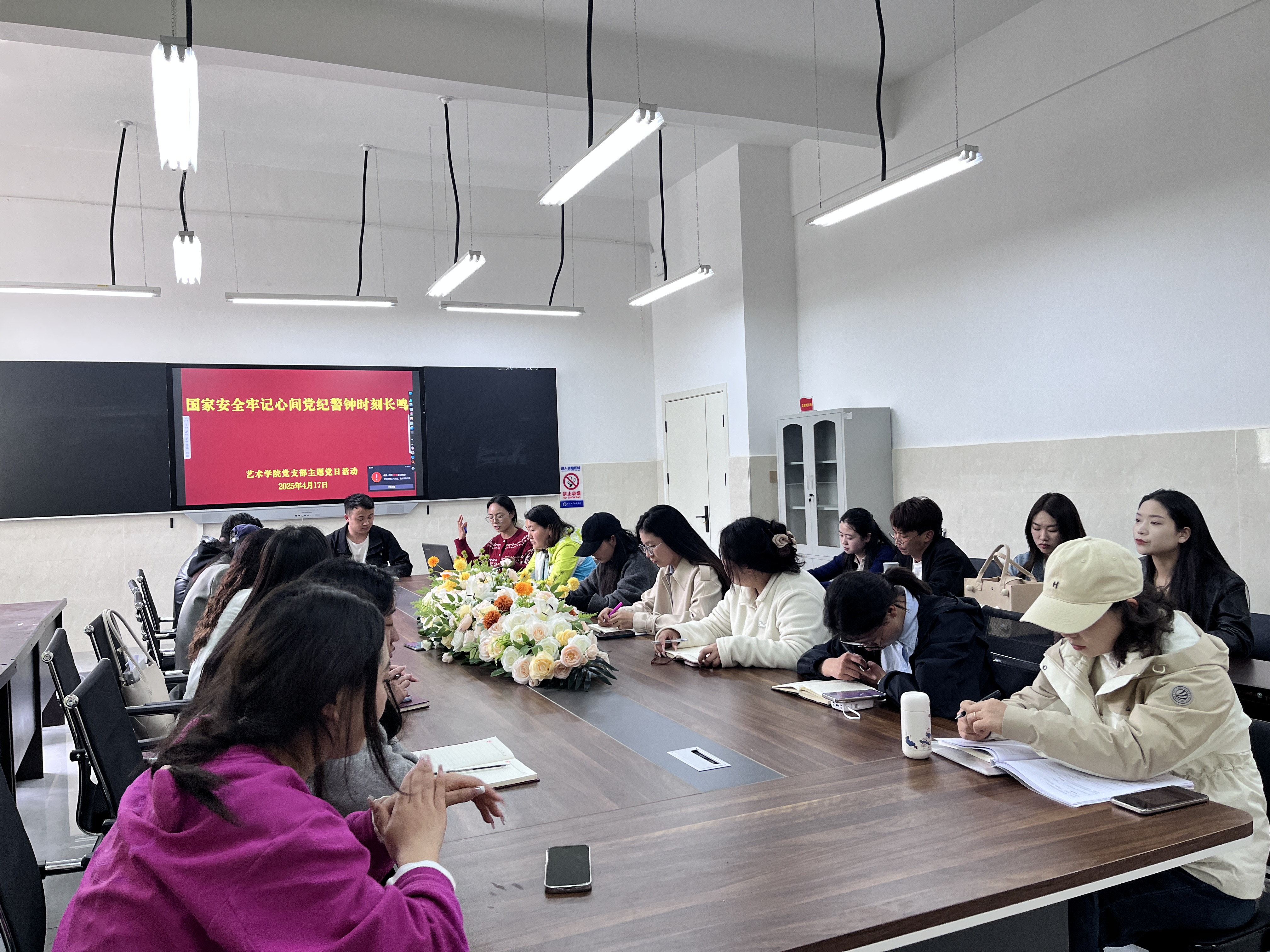 4 月 17 日,艺术学院党支部开展 “国家安全牢记心间 党纪警钟时刻长鸣” 主题党日活动,党支部全体党员、预备党员参加本次主题党日活动。本次主题党日活动目的在于深入学习习近平总书记关于总体国家安全观的重要论述,切实增强党员干部的国家安全意识,推动国家安全教育在学院走深走实。