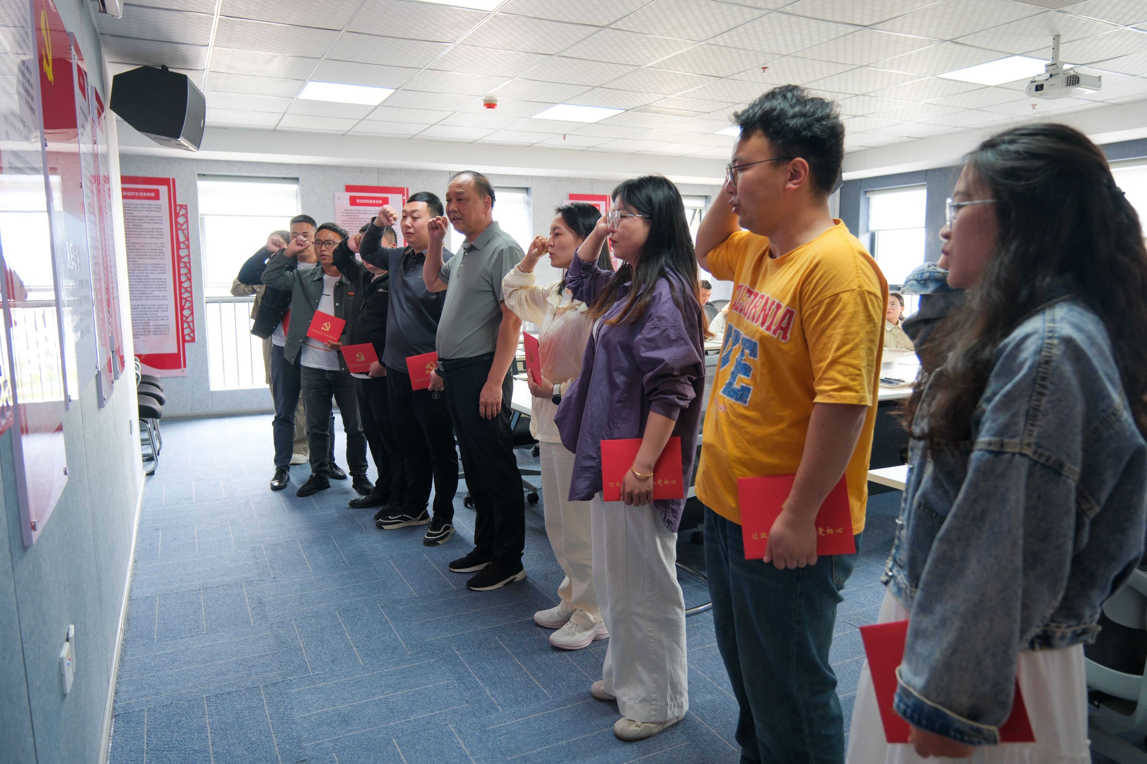 随后,曾隆槐带领过政治生日的党员们在鲜红的党旗下庄严宣誓,重温入党誓词。“我志愿中国共产党......”铿锵有力的誓言响彻会场,深刻提醒每一名党员不忘初心、牢记使命。
