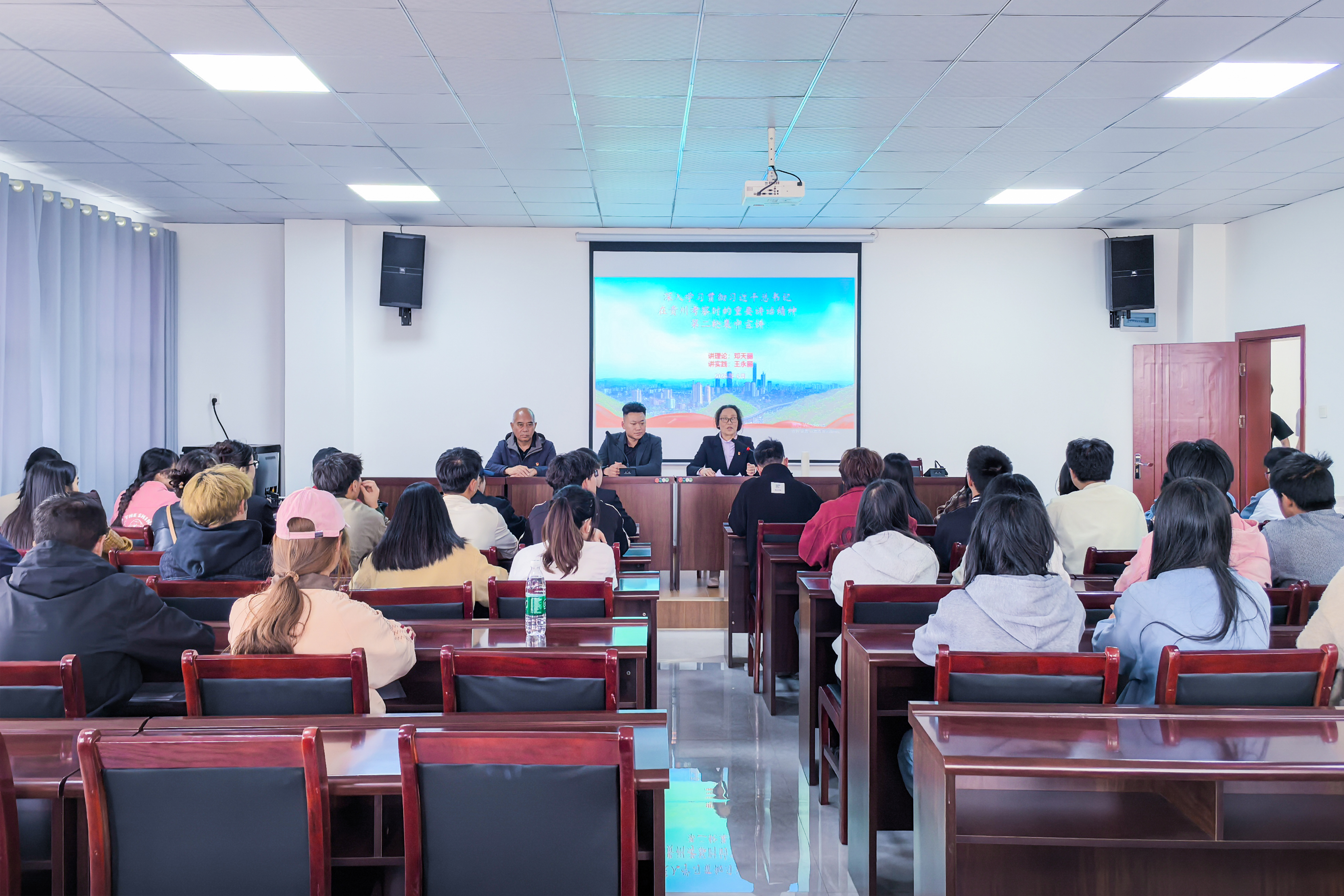 随后,马克思主义学院院长邓天丽作开场发言。邓天丽阐述了此次活动的双重意义:一是作为一次重要的主题党日活动,旨在现场宣讲和体悟习近平总书记对贵州发展的殷切嘱托和战略指引,引导师生深刻领会其核心要义;二是作为一堂生动的“实践中的思政课”,落实“校企协同育人”理念,为学生搭建了解国情省情、接触产业前沿、提升实践能力的平台。
