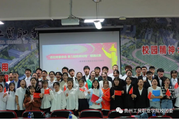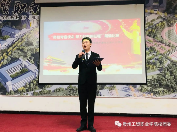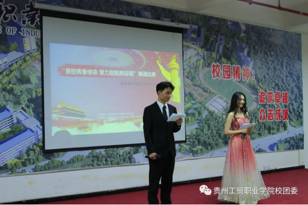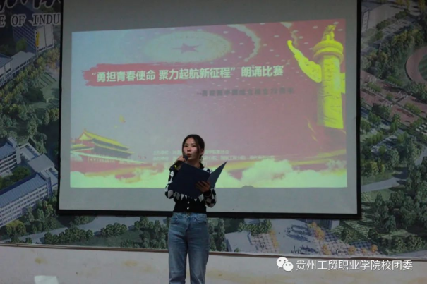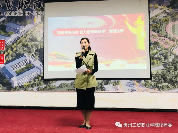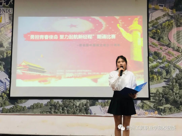 为庆祝中华人民共和国成立72周年,9月29日晚七点半,贵州工贸职业学院成功举办“勇担青春使命,聚力起航新征程”朗诵比赛。本次朗诵比赛由贵州工贸职业学院校团委主办,智能工程分院、现代商务分院、社会服务分院、艺术分院承办。