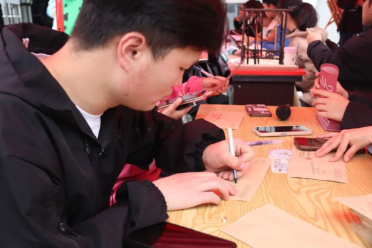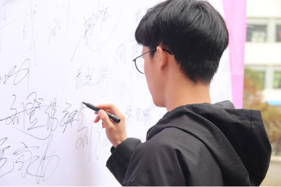 活动现场,校团委工作人员分别在卓越食堂门口两侧设置了写信点和签名墙。随后,在工作人员的引导下,我校师生纷纷到写信处书写了对母亲的真挚情感,向母亲表达了爱与感谢之情,并在签名墙上留下自己的祝福和对母亲的感谢之辞,用心的话语和美丽的图案装点着对母亲的思念。