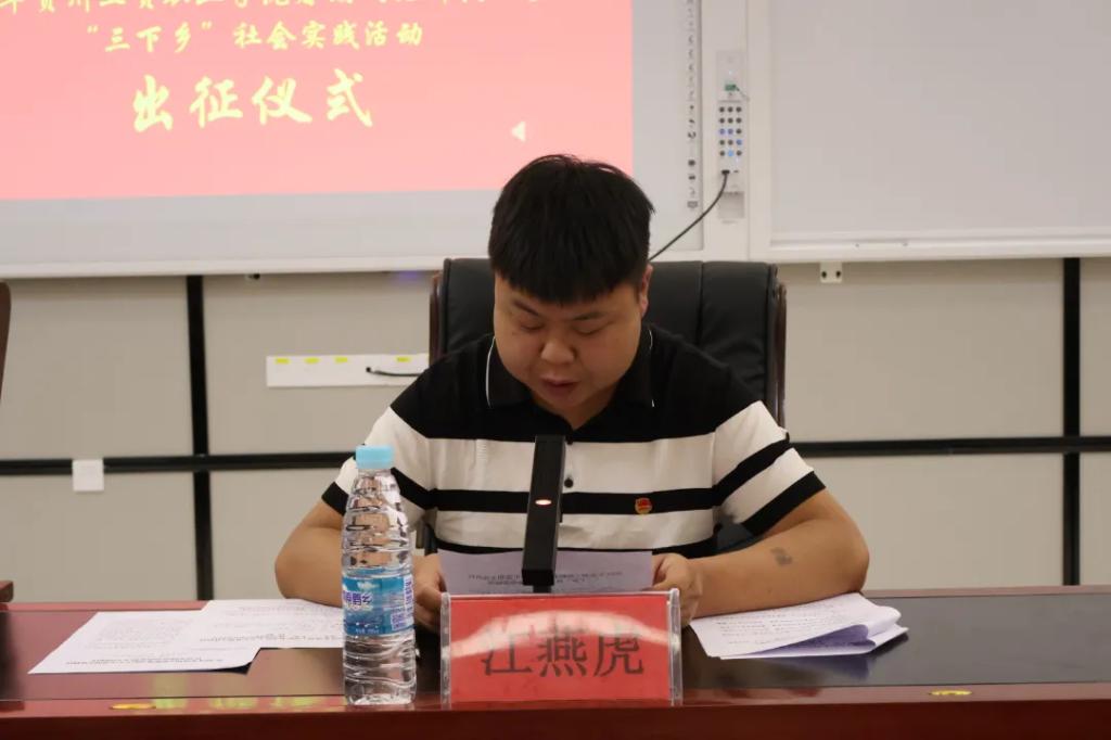 江燕虎作相关指示,一是希望同学们一定要牢牢树立“安全第一”的思想,始终把安全工作放在首位。严守纪律,服从指挥,不断增强自我保护意识,与实践地接收单位和学院有关部门保持密切畅通的联系,确保实践活动安全顺利开展。二是希望同学们以饱满的热情和高度的责任感投入到活动中,在活动中发扬奉献、友爱、互助、进步的志愿者精神,坚持学习书本知识和投身社会实践的统一,深入基层一线,以实际行动服务人民群众。三是希望同学们在“三下乡”活动中要强化纪律观念,积极传播正能量,弘扬社会主义核心价值观,严格遵守国家法律法规和当地政府的规章制度,尊重当地风俗习惯和地域文化,展现良好的贵工贸青年形象。四是希望同学们要在实践活动中充分发挥我校学生的自身专业优势,深入开展社会调查研究、行业专业调研等社会实践活动,用自己的实际行动服务社会的建设,在实践中提高自身素质,促进全面发展。