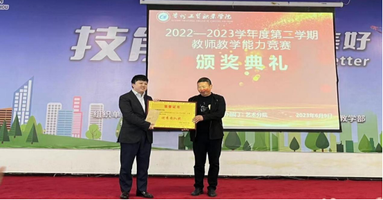 6月9日下午,我校在综合楼二楼学术报告厅举行教师教学能力竞赛颁奖典礼,颁奖典礼由教务处主办、艺术分院承办。本次活动是以加强我校教师教学基本功和教学能力训练为着力点,培养教师爱岗敬业、严谨治学的态度,进一步激发教师更新教育理念和掌握现代教学方法的热情,鼓励积极探索以学生为中心的教学方法,造就一支师德高尚、业务精湛、充满活力的专业化教师队伍,推动我校教育教学高质量发展。