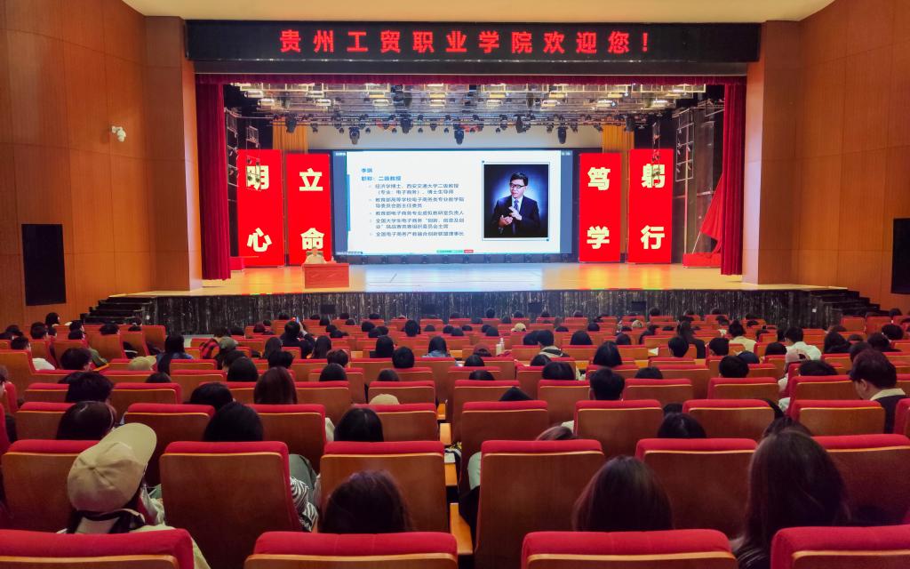 9月25日,贵州工贸职业学院与第十五届全国大学生电子商务“创新、创意、创业”挑战赛(简称“三创赛”)竞组委直播电商实战国赛开展合作交流,特邀教育部高等学校电子商务类专业教学指导委员会副主任委员、全国大学生电子商务“三创赛”竞组委主席、西安交通大学博士生导师李琪教授在辰海大剧院为师生们作专题讲座。讲座由校党委委员、副校长勒系琳主持,现代商务学院(乡村振兴产业学院)院长熊器、教师代表和上千名学生参加。