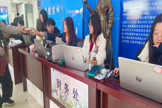 学工处主要负责新生资助认定,接收办理助学贷款业务,并为家庭经济困难入学新生提供“绿色通道”咨询服务,以及落实好新生军训的相关工作。总务处主要负责迎新场地的布置,提供迎新现场桌椅及所需物资;负责新生报到期间所有工作人员的饮水供应;床上及配套用品和新生报到期间的后勤保障工作。宿管科主要负责新生宿舍的安排,宿管工作人员不辞辛苦、尽职尽责,尽最大努力为新生提供方便和人性化的服务,让刚踏入大学校园的新生感受到了家一般的温暖。财务处为做好新生学费收缴确认及票据整理,精心筹备、认真安排,全体成员以饱满的热情投入到迎新工作中。学校网络信息中心主要负责迎新系统维护及网络保障。