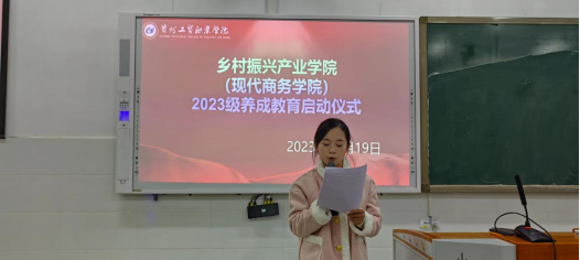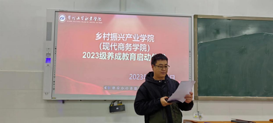 10月19日,乡村振兴产业学院(现代商务学院)于三教二阶举行了2023级新生养成教育动员大会。乡村振兴产业学院(现代商务学院)常务副院长杨一梅、学工科科长吴国凡、学工科科员夏婷、各班辅导员以及23级各班学生干部、学生代表参加。动员会由吴国凡主持。