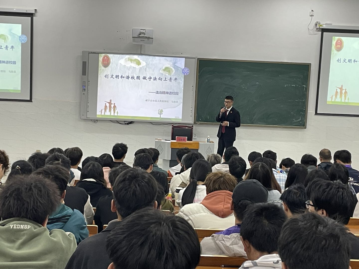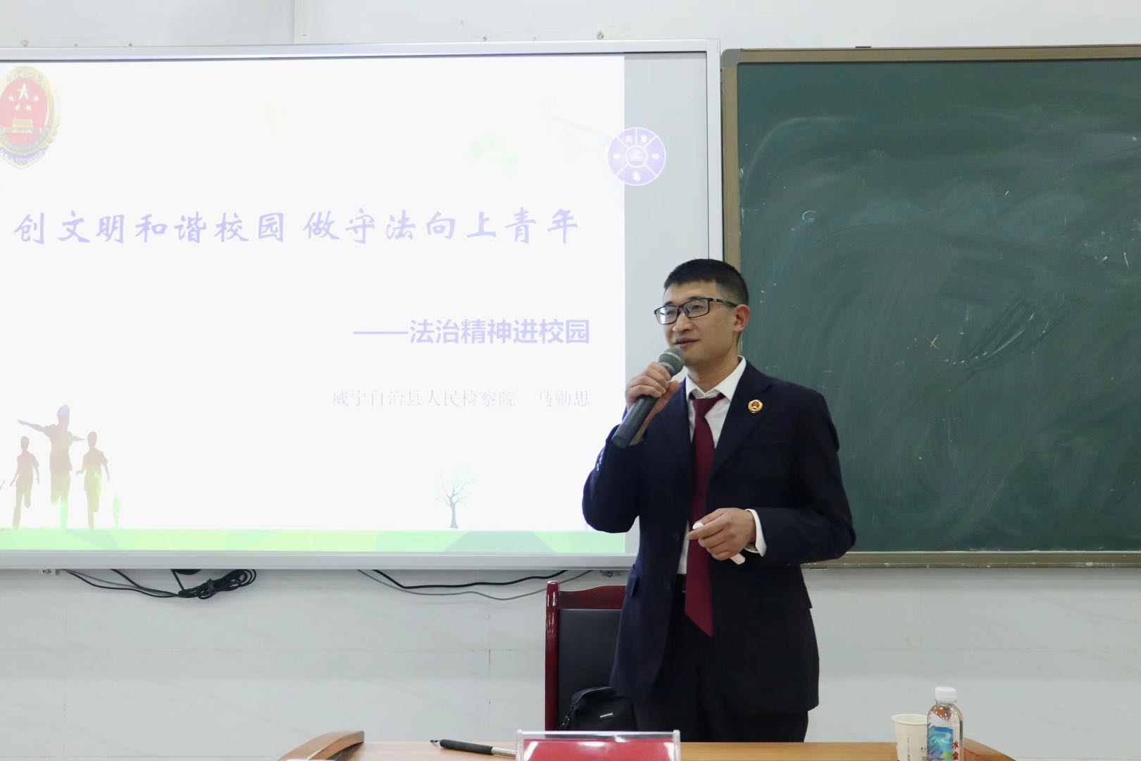 为培养学生的法治意识和道德观念,引导我院学生树立正确的法治观念,增强法律意识,构建和谐校园。4月2日晚,新能源产业学院(智造工程学院)组织学生会成员以及各班学生代表在一号教学楼第四阶梯教室,开展以“创文明和谐校园、做守法向上青年”为主题的讲座。本次讲座特邀威宁县人民检察院第二检察部负责人、检察委员会委员、一级检察官马勋思主讲。