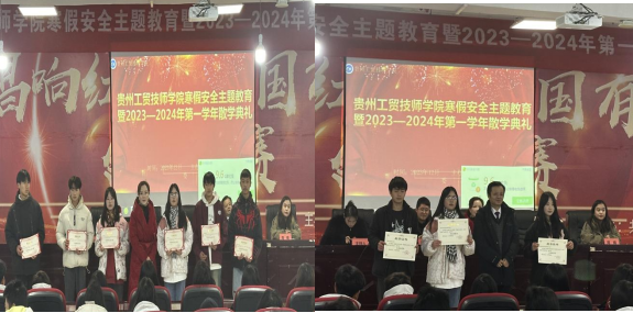 散学典礼由勤奋好学,收获硕果;安全在心,时刻谨记;回顾过去,展望未来三个环节组成。贵州工贸职业学院党委副书记聂立新宣读关于表彰优秀学生、优秀班干、优秀班级及优秀学生会干部、干事的决定。并由出席典礼的校领导对受表彰的班级和同学进行了颁奖和热烈的祝贺,希望受表彰的同学要戒骄戒躁,再接再励,勇于创新,不断进步,各班要积极引导学生学先进、赶先进、超先进,争取下一学期取得更大的进步!坚定理想信念,自觉刻苦学习,努力学习技能,全面提升素质,做新时代中国特色社会主义的接班人”。