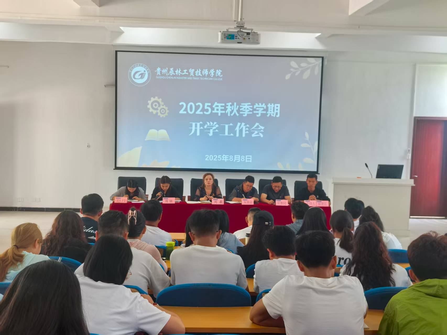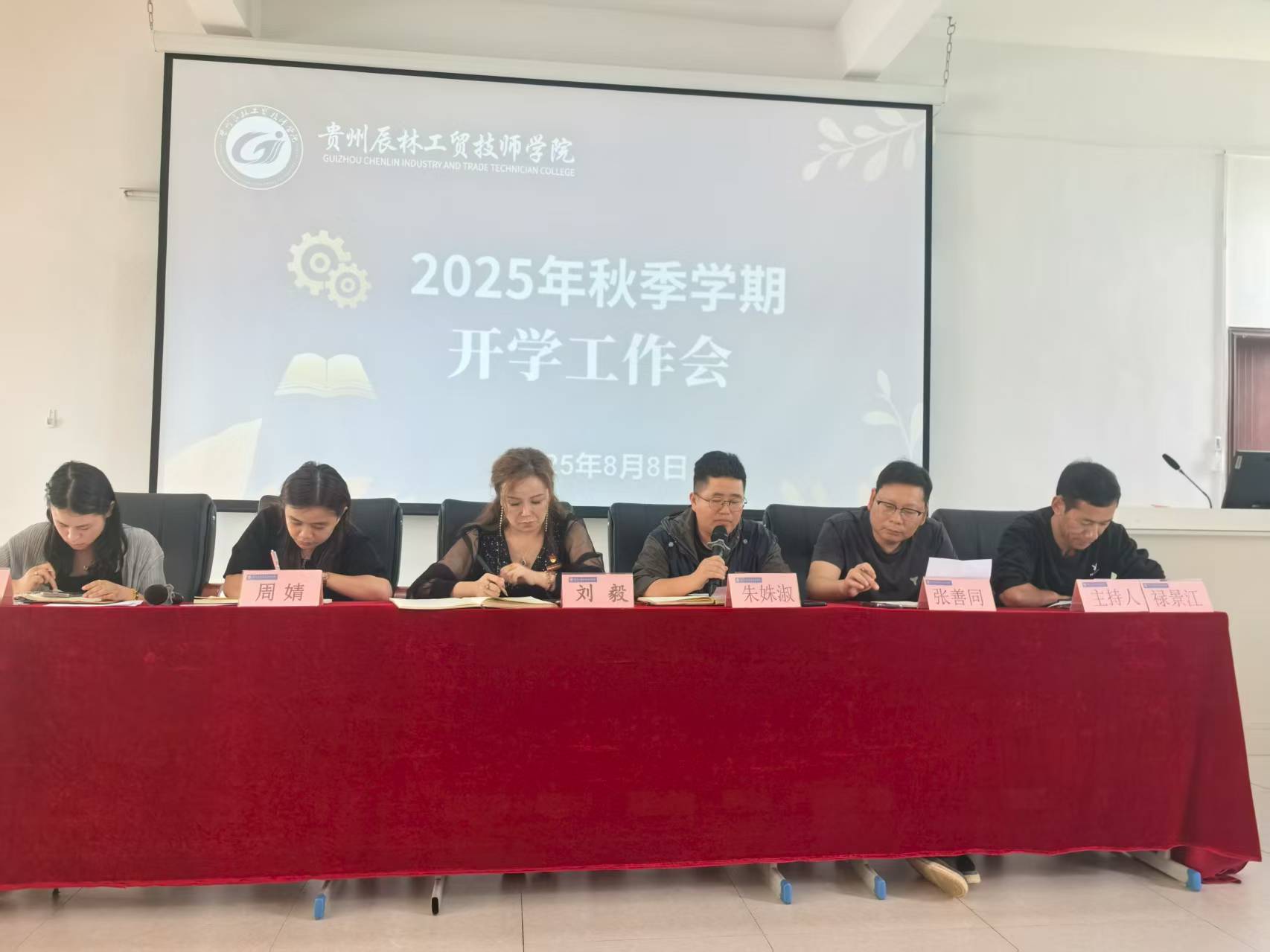秋至启新程,奋斗正当时。随着秋季的到来,新学期已悄然开启。贵州辰林工贸技师学院于2025年8月8日下午组织全体教职工召开了新学期开学工作会议,明确了新学期各项工作的内容、职责和目标,全院上下凝心聚力、砥砺前行,为学生们规划出一幅绚烂的成长蓝图!会议由教务处禄景江科长主持。