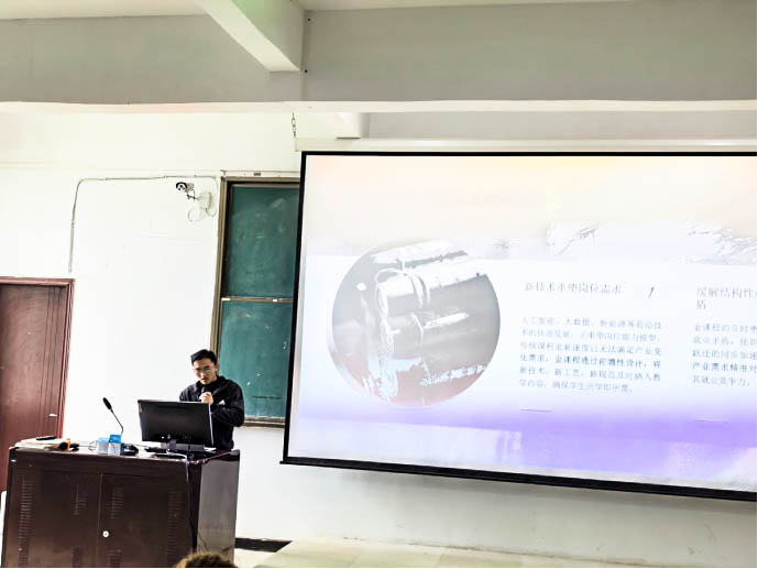 机械专业教师谢贵林围绕“金课”建设的必要性与路径作了系统分享。谢贵林提出,课程是人才培养的微观单元,更是教学改革的核心载体。他以学生为中心、能力为本位,阐述了如何通过重构教学内容、创新教学方法、完善评价机制,将“教、学、做”融为一体,切实提升学生的专业技能与综合素养。谢老师结合汽修专业课程改革实践,强调“金课”不仅是知识的传递,更是能力的锻造,是帮助学生从“学会”到“会做”、从“操作工”成长为“技术能手”的关键支撑。