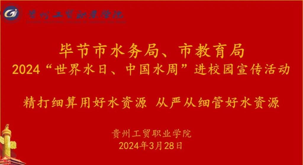2024年3月22日是第三十二届“世界水日”2024年3月22—28日是第三十七届“中国水周”2024年主题为“精打细算用好水资源,从严从细管好水资源”3月28日毕节市水务局、毕节市教育局到贵州工贸职业学院开展创建节水型...