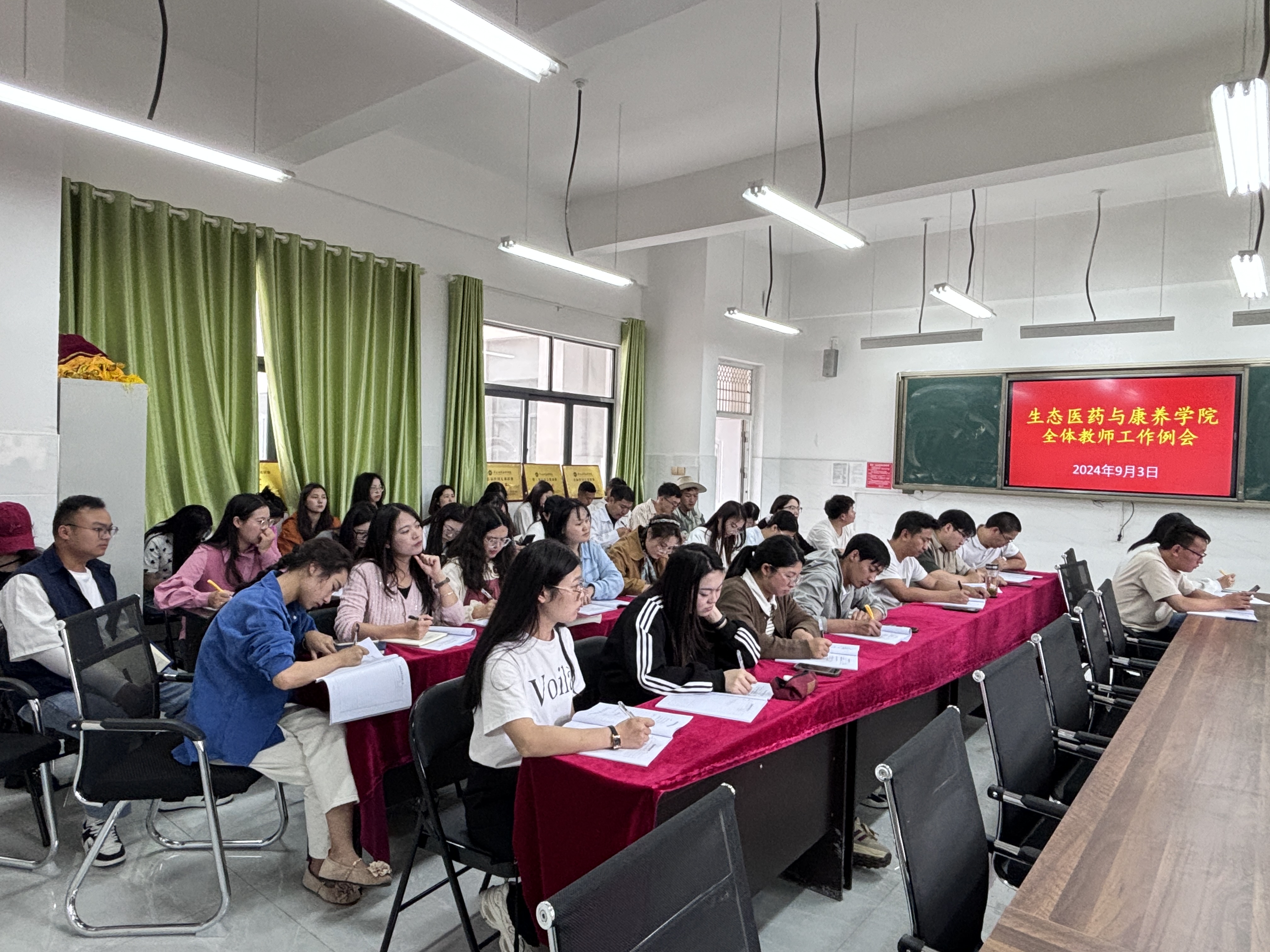 9月3日,生态医药与康养学院在会议室召开教学工作例会,院长阮培均,党支部书记赵英涛,学工科科长李吉咡,教务科科长蔡国琴,办公室主任王方对。本次会议由王方对主持。赵英涛首先就学院党建工作进行了全面部署...
