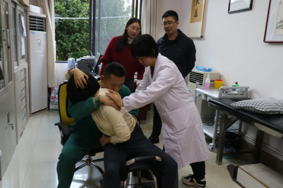 廖烨纯现场施诊,为病人进行彝医飞针治疗