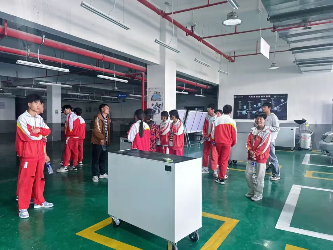 随后,研学队伍环绕校园参观,沉浸式感受大学校园的学习氛围与人文气息,真切体会大学的治学氛围与青春朝气。在工作人员的带领下,师生们走进汽车制造实训中心,亲临一线实践教学现场,直观了解汽车制造相关专业的实训设备、教学流程和实操技艺。同学们认真聆听讲解,仔细观察实训操作,近距离感受现代职业教育的特色与魅力,亲眼见证理论知识与实践操作的紧密结合,深刻认识到技能成才、技能报国的重要意义,在心中种下崇尚科学、勤学苦练、勇于实践的种子。