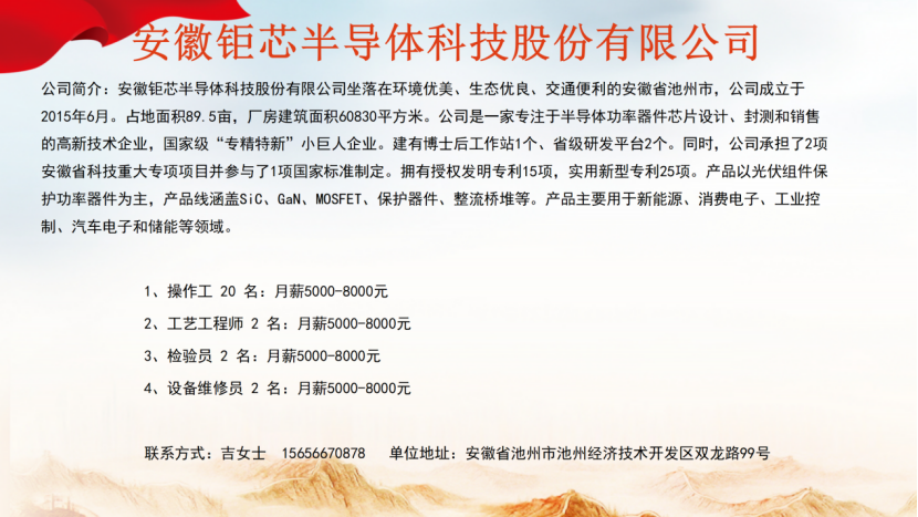 池州—长三角一体化发展的重要节点城市,长江南岸美丽的生态绿城、产业新城。这里交通便捷,高铁、机场、港口一应俱全,1小时可达合肥、南京,3小时直达上海、杭州。当前,池州正全力打造半导体、新材料、高端装备制造、新能源四大百亿级产业集群: