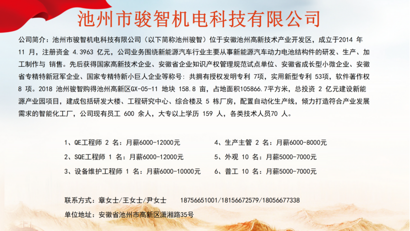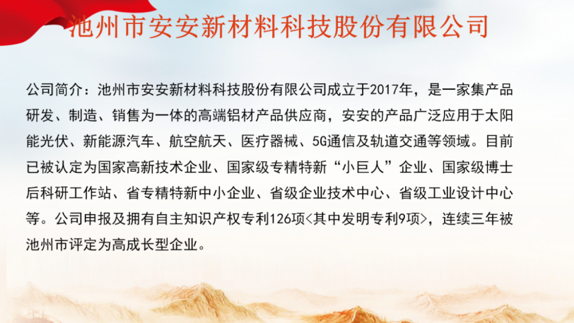 全市拥有诸多国家级、省级专精特新企业,博士后工作站、企业技术中心、工业设计中心等创新平台林立。选择池州,就是选择与长三角发展同频共振!