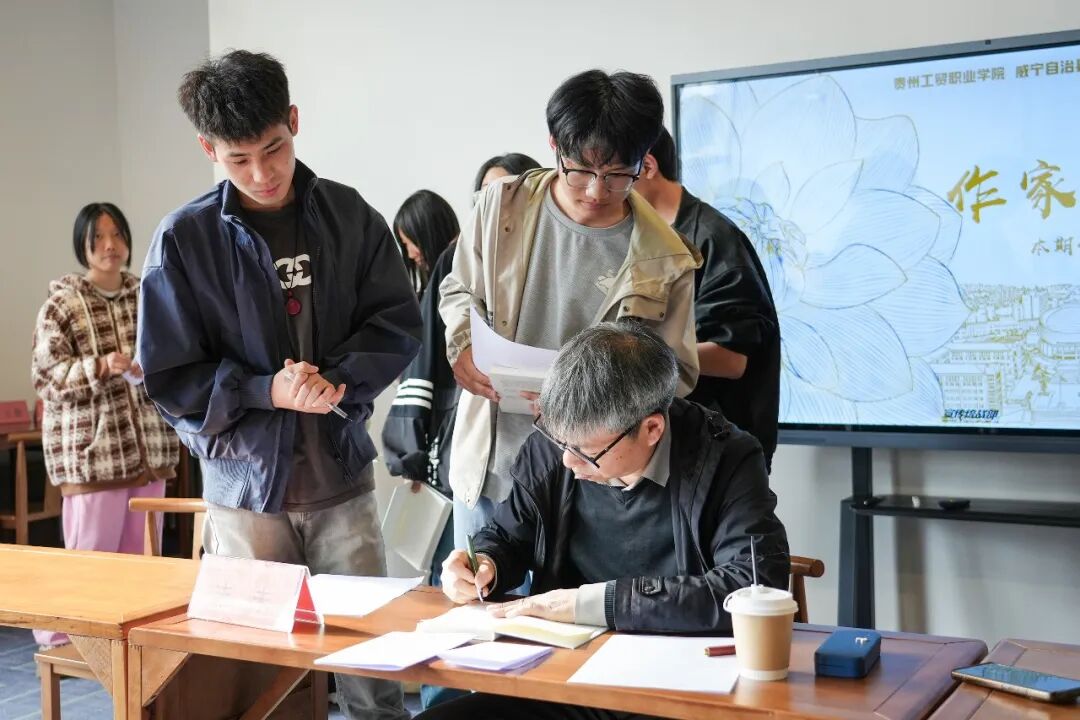 此次活动是贵州工贸职业学院推进“书香校园”建设的重要举措之一。与会同学表示,在世界读书日到来之际与作家面对面交流,并获赠签名诗集,更加坚定对文学的热爱,也明确今后阅读与写作的方向。学校将继续引入优质文化资源,以阅读涵养精神底色,以写作锤炼思维深度,为培养全面发展的高素质人才提供丰厚的文化土壤。