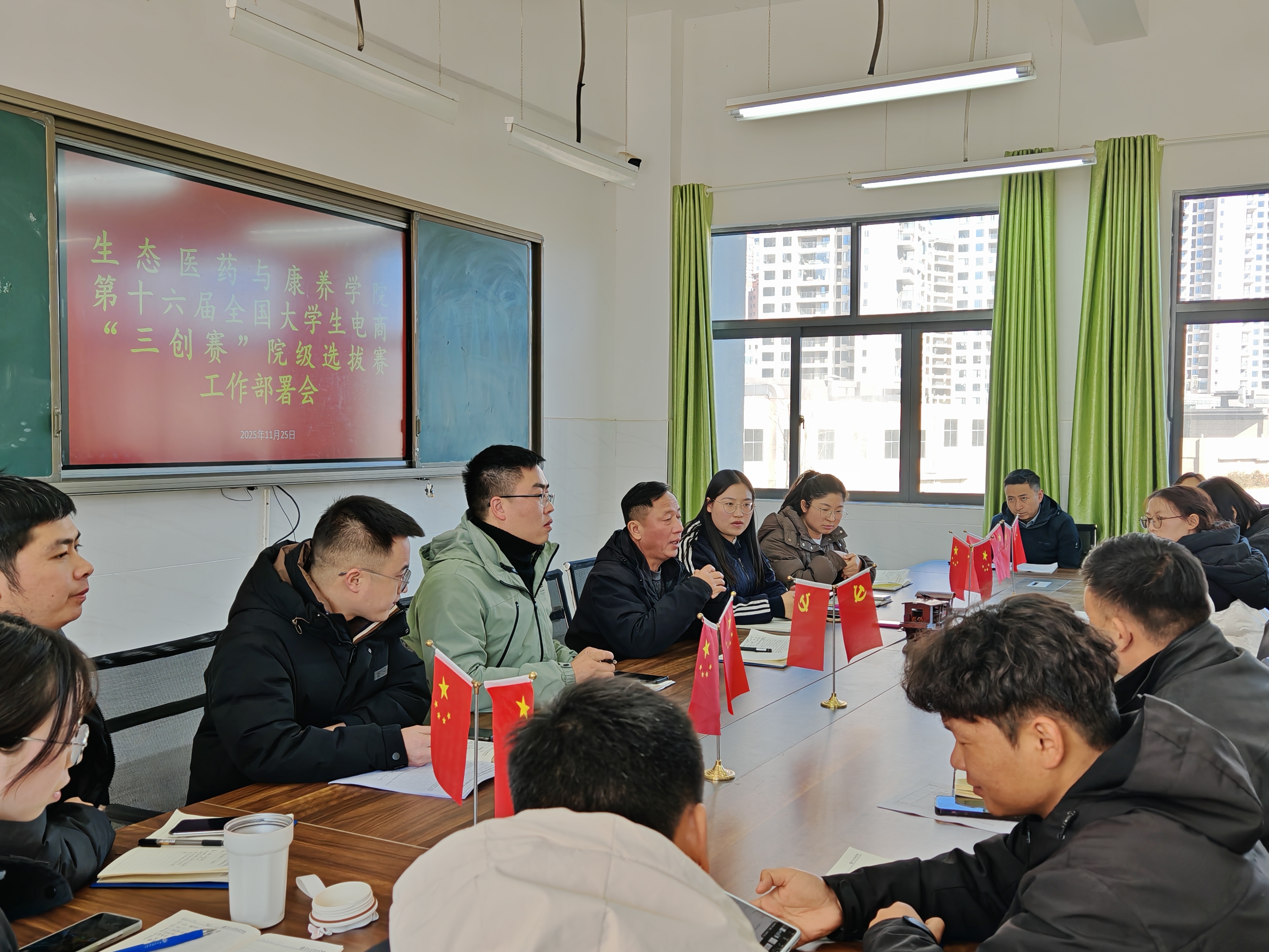 为响应教育部“以赛促教、以赛促学、以赛促创”号召,深化创新创业教育改革。11月25日,生态医药与康养学院在三教东区110召开第十六届全国大学生电子商务“三创赛”院级选拔赛工作部署会。院长骆强,副院长杨丽琴及学院全体教职工参会。本次会议由骆强主持。