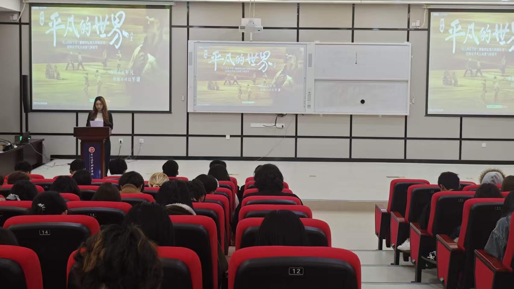 24级艺术设计二班学生刘思宇分享史铁生的散文集《我与地坛》,从文本出发介绍作者对生命与亲情的思考。随后,25级音乐表演一班学生李佳佳围绕路遥的长篇小说《平凡的世界》,结合艺术专业学习经历,讲述书中人物在困境中坚持奋斗的情节及其对个人成长的启发。