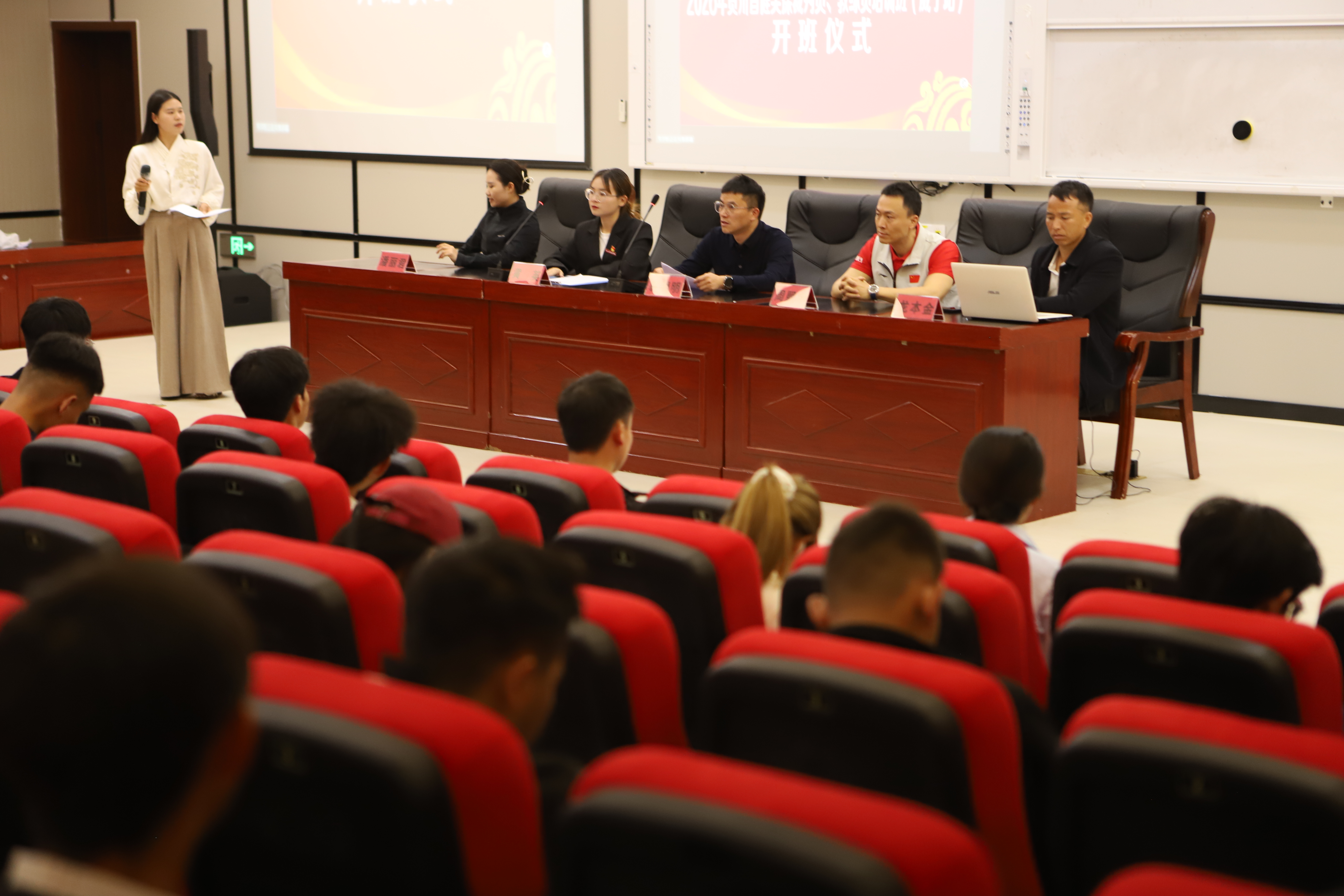 为深入贯彻《“健康中国2030”规划纲要》,全面提升贵州省健美操项目裁判员执裁水平与教练员教学能力,储备省级赛事专业人才。4月18日,2026年贵州省健美操裁判员、教练员培训班(威宁站)在贵州工贸职业学院正式开班。本次培训由贵州省健美操协会主办,贵州工贸职业学院承办,吸引全省各地健美操从业者、爱好者齐聚威宁,共学专业技能、共促项目发展。开班仪式在贵州工贸职业学院图书馆负一楼报告厅举行。贵州省健美操协会秘书长易明明、副秘书长龙本金;贵州省健美操协会金牌培训导师、一级裁判员、高级教练员潘丽君;国家体育总局社体中心普拉提贵州推广单位培训师周熙宇;贵州工贸职业学院国防教育与体育学院办公室主任黄英及全体培训导师、参训学员参加仪式。仪式由韦学粉老师主持。