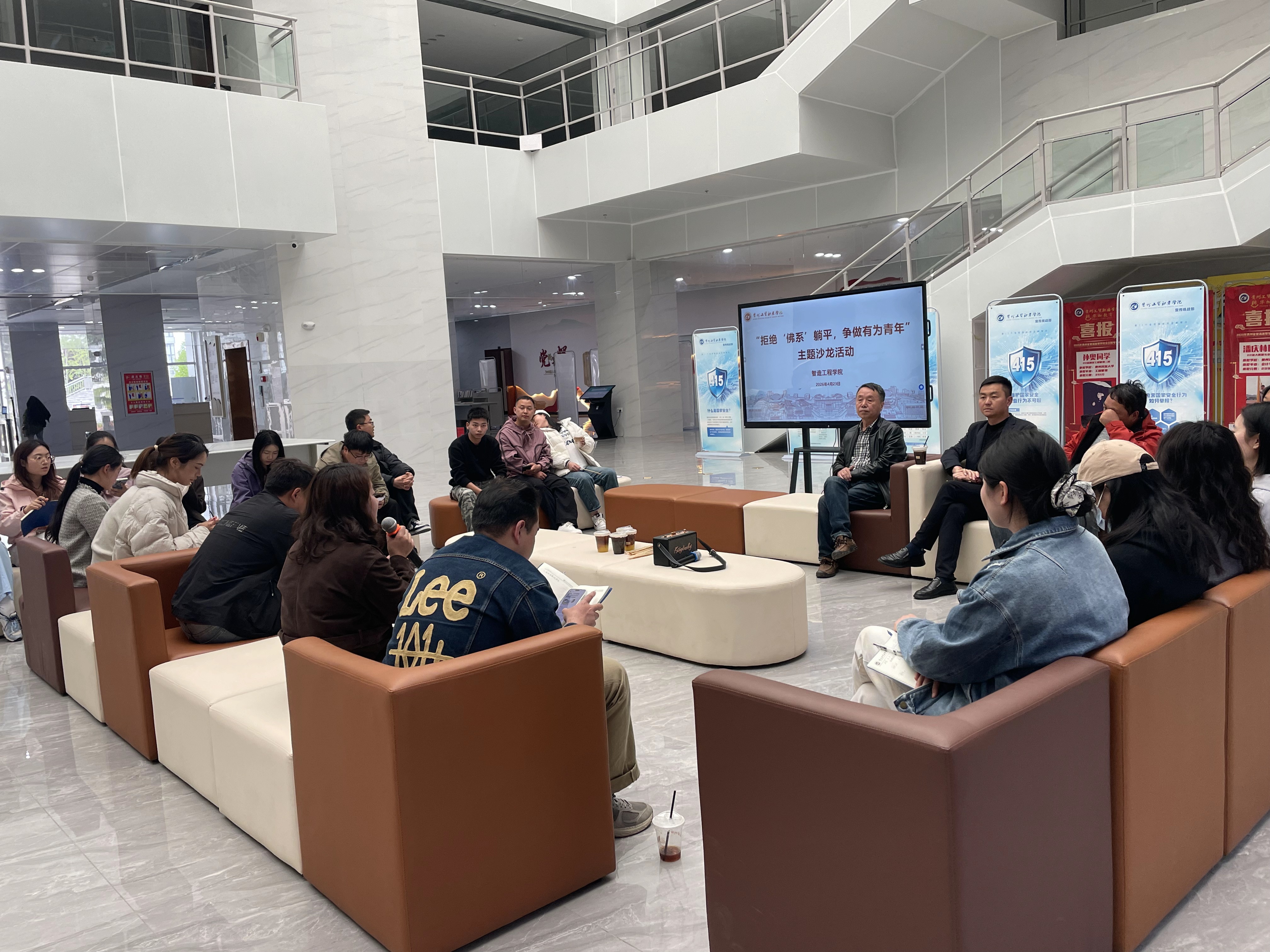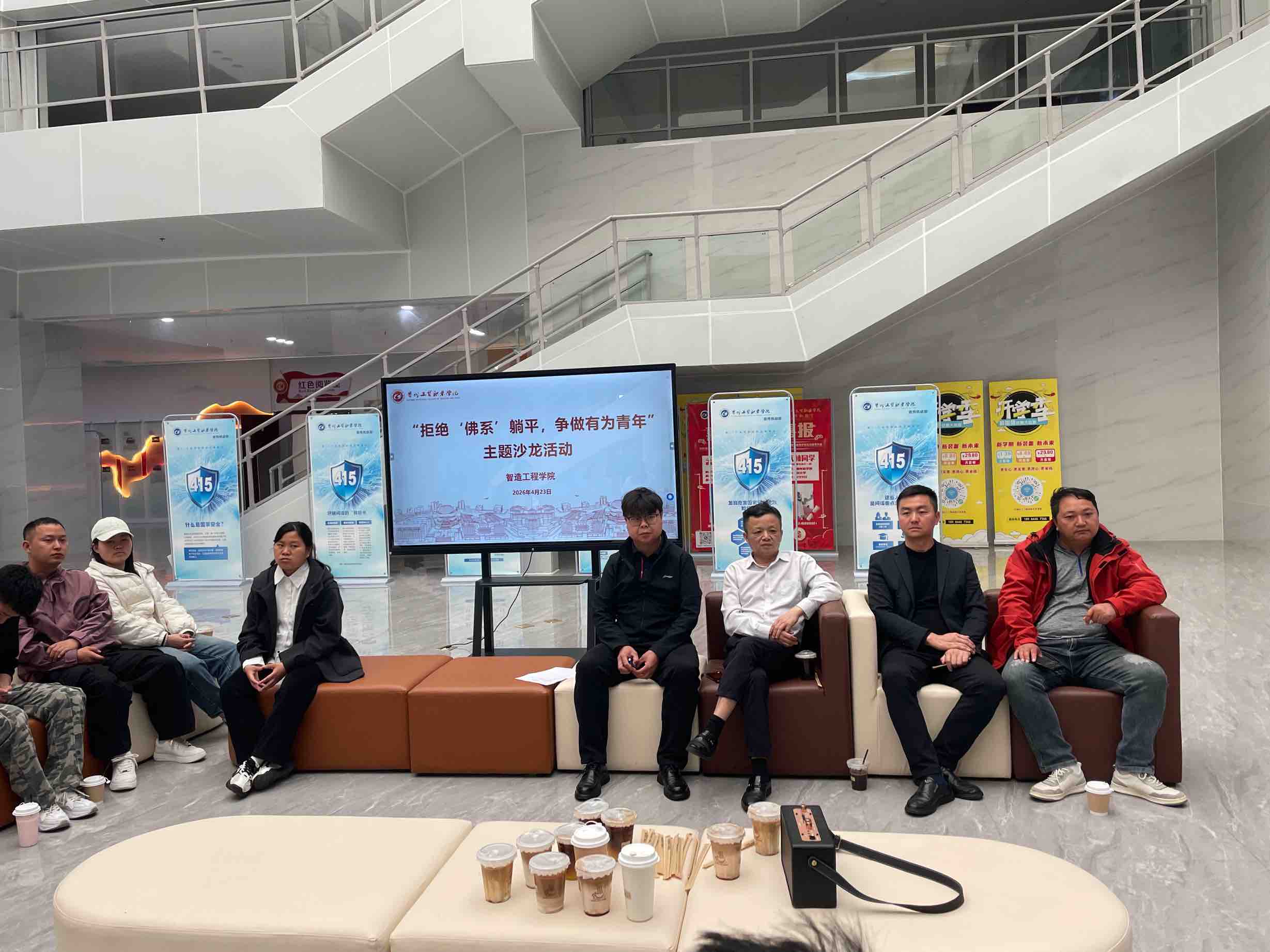 为切实提升辅导员思政育人与谈心谈话工作能力,有效纠治部分学生“佛系躺平”消极思想,引导学子树立奋斗志向、筑牢理想信念,4月23日,智造工程学院在图书馆一楼大厅开展“拒绝‘佛系’躺平,争做有为青年”主题沙龙活动,学校理事长黄冠迪,校党委副书记、纪委书记聂立新,党委学生工作部(处)长、校团委书记江燕虎,智造工程学院院长黄乾贵,智造工程学院党支部书记庹志兴出席,学院学工科及全体辅导员,其他学院科长、辅导员受邀参与共同研讨交流。