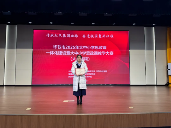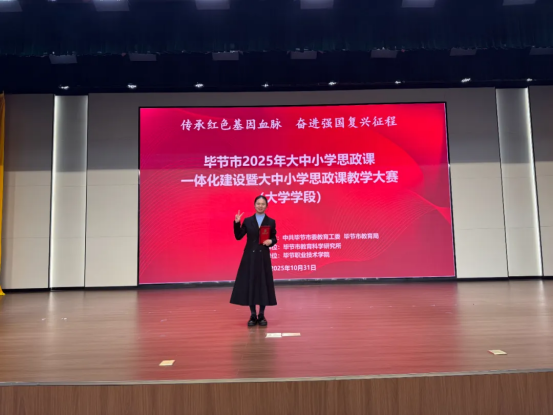 10月31日,在毕节职业技术学院落幕的“毕节市2025年大中小学思政课一体化建设暨大学学段思政课教学大赛”中,贵州工贸职业学院选派的三位青年教师凭借扎实功底与出色表现,从众多参赛者中脱颖而出,载誉而归。