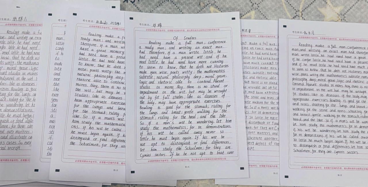 本次大赛为学生搭建了展示书写才华、互相交流学习的平台,有效激发了学生对英语书写的兴趣,强化了规范书写意识,也为后续专业英语学习与职业发展打下良好基础。评委团由英语教师宋娟及教务处处长、教务科科长组成,依据“书写规范、卷面整洁、整体美感”三项标准,对参赛作品进行了公正评审。