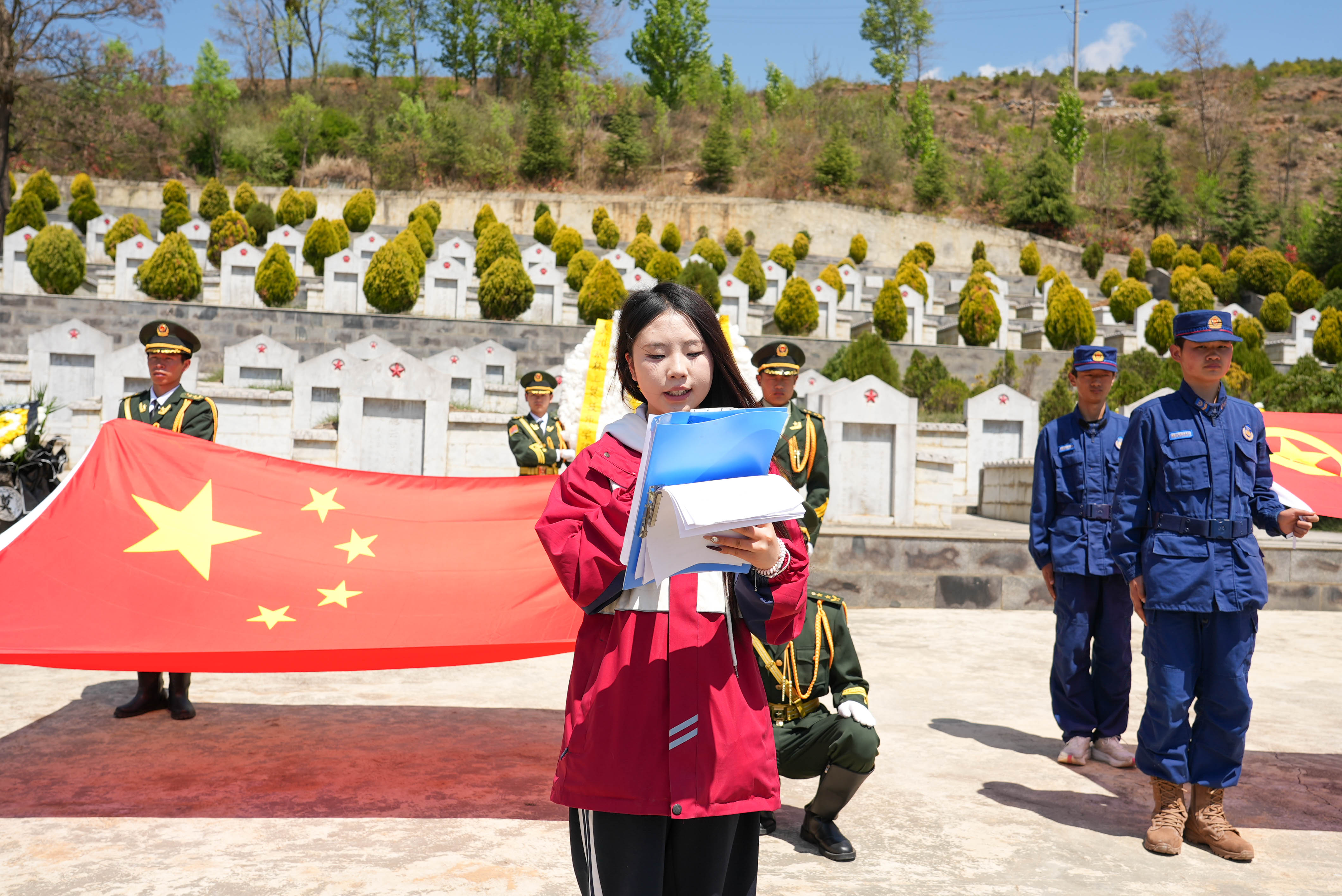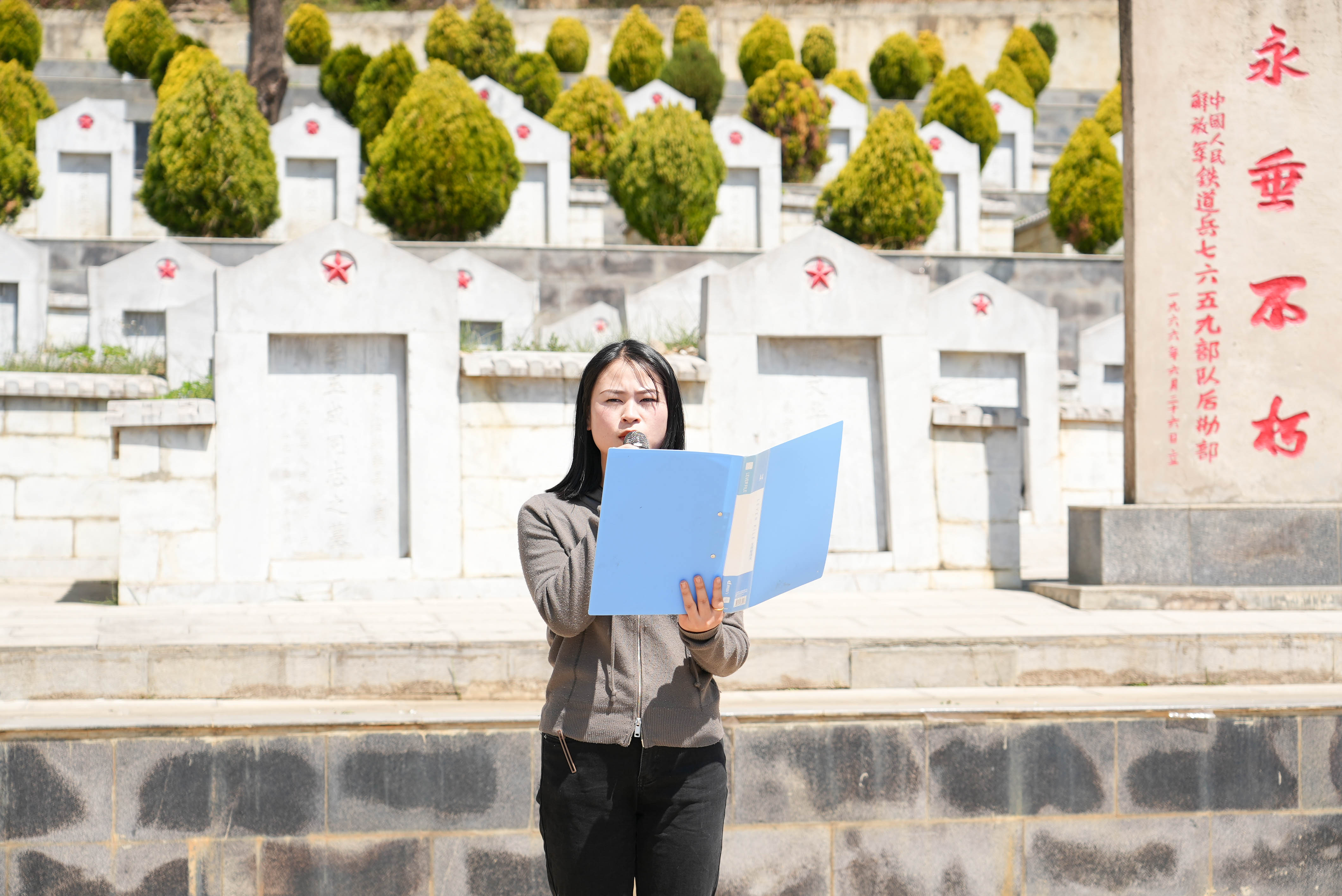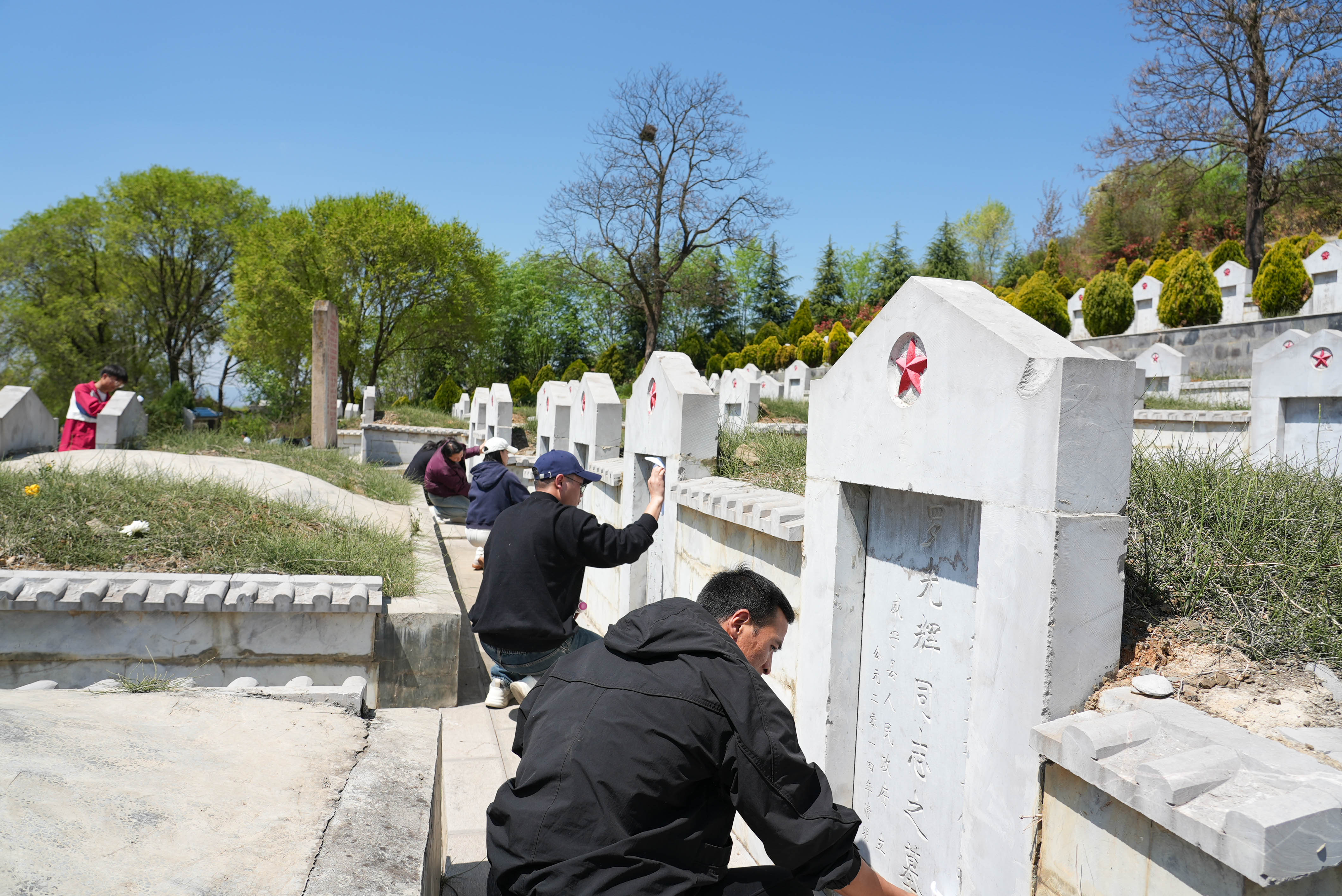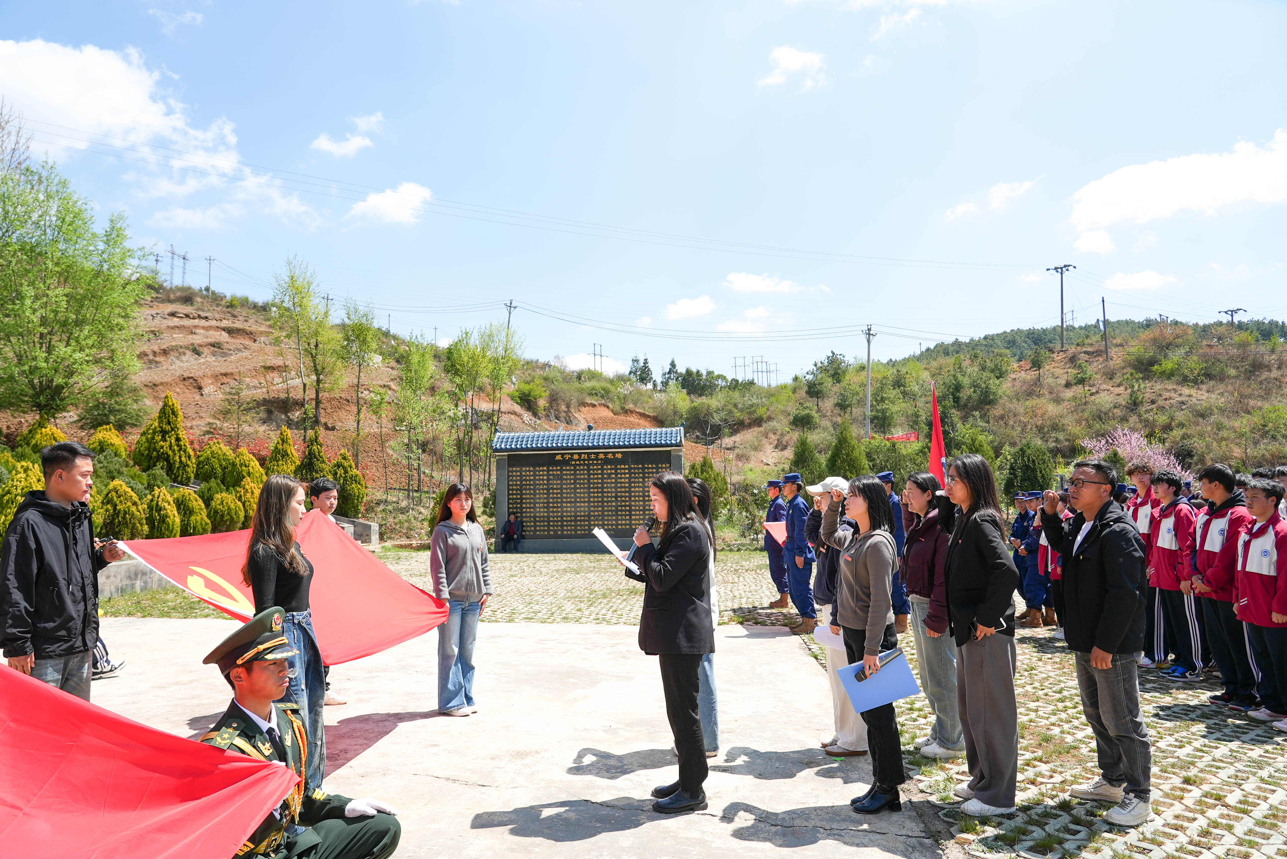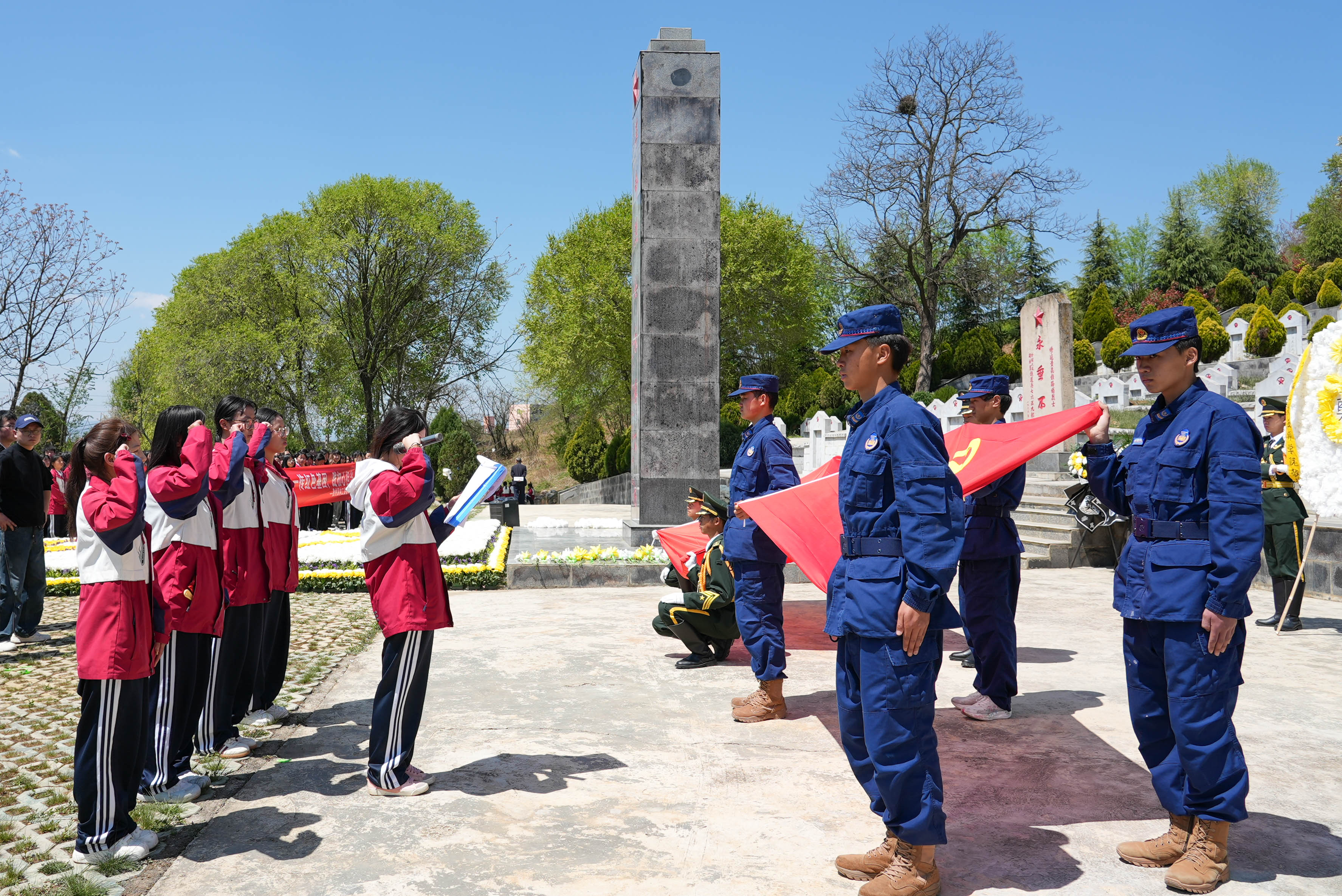 随后,全体党员重温入党誓词,全体团员重温入团誓词,铿锵誓言在陵园上空回荡。师生们还聆听了英烈故事宣讲,并擦拭墓碑、瞻仰纪念碑。
