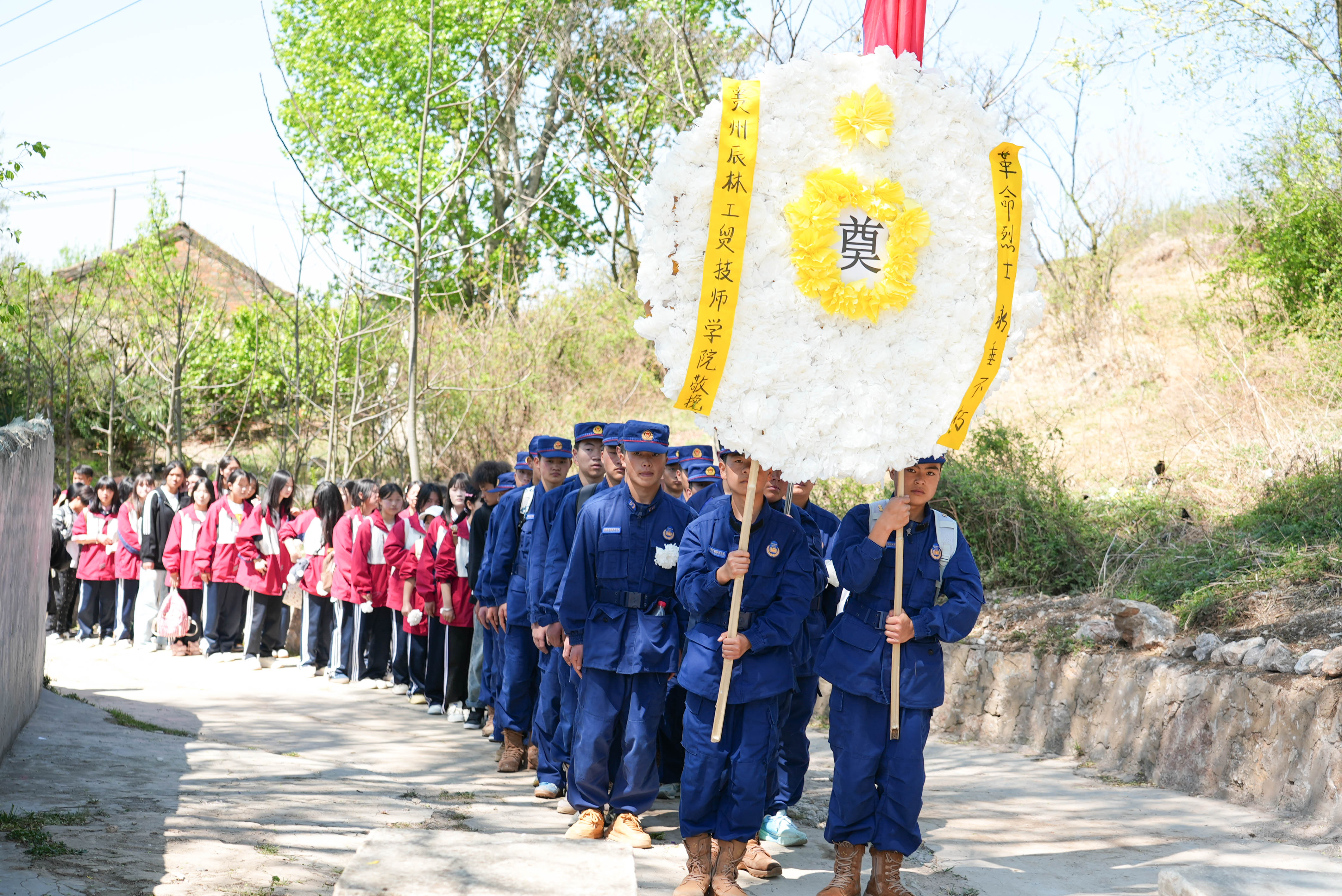 3月30日,贵州辰林工贸技师学院组织全校500余名师生,徒步前往威宁县沙河边烈士陵园开展清明祭扫活动。